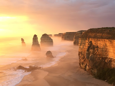 回到12門徒石,開始日落啦,顏色開始多咗幾層,又有另一種感覺!霧氣依然存在,但係個天開始變得深藍,加上日落的紅紅紫紫色,影照住12門徒石,更覺壯麗!大自然的鬼斧神工就係好厲害呀!